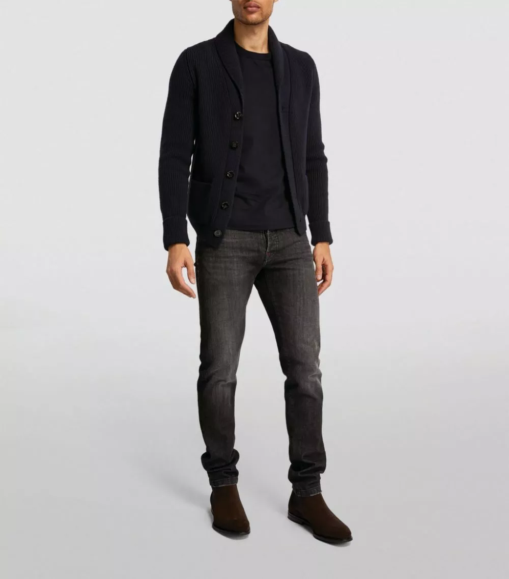 This TOM FORD cardigan is a quintessential addition for knitwear collectors seeking a sophisticated update. The label opts for a hallmark shawl collar and simple button-down construction in sumptuous cashmere, imagining a neat profile that’s delightfully soft and speaks to the classicist in you.