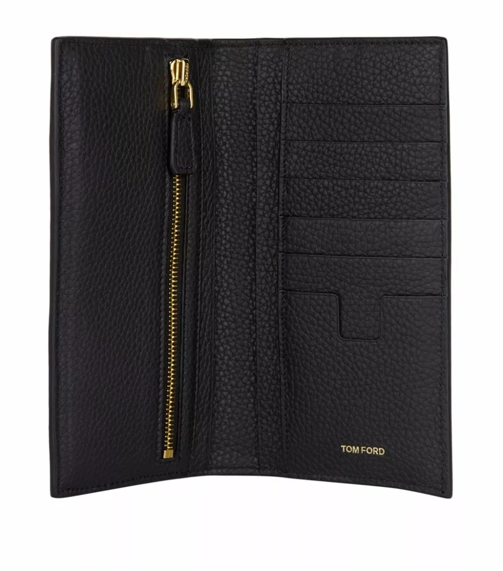 Imbue your accessories arsenal with the understated elegance of this TOM FORD bifold wallet. Crafted in Italy from softly grained leather, the streamlined profile is punctuated with gold-tone logo embossing. The design opens to reveal an organised interior, from an array of card slots to a practical zipped coin pouch.