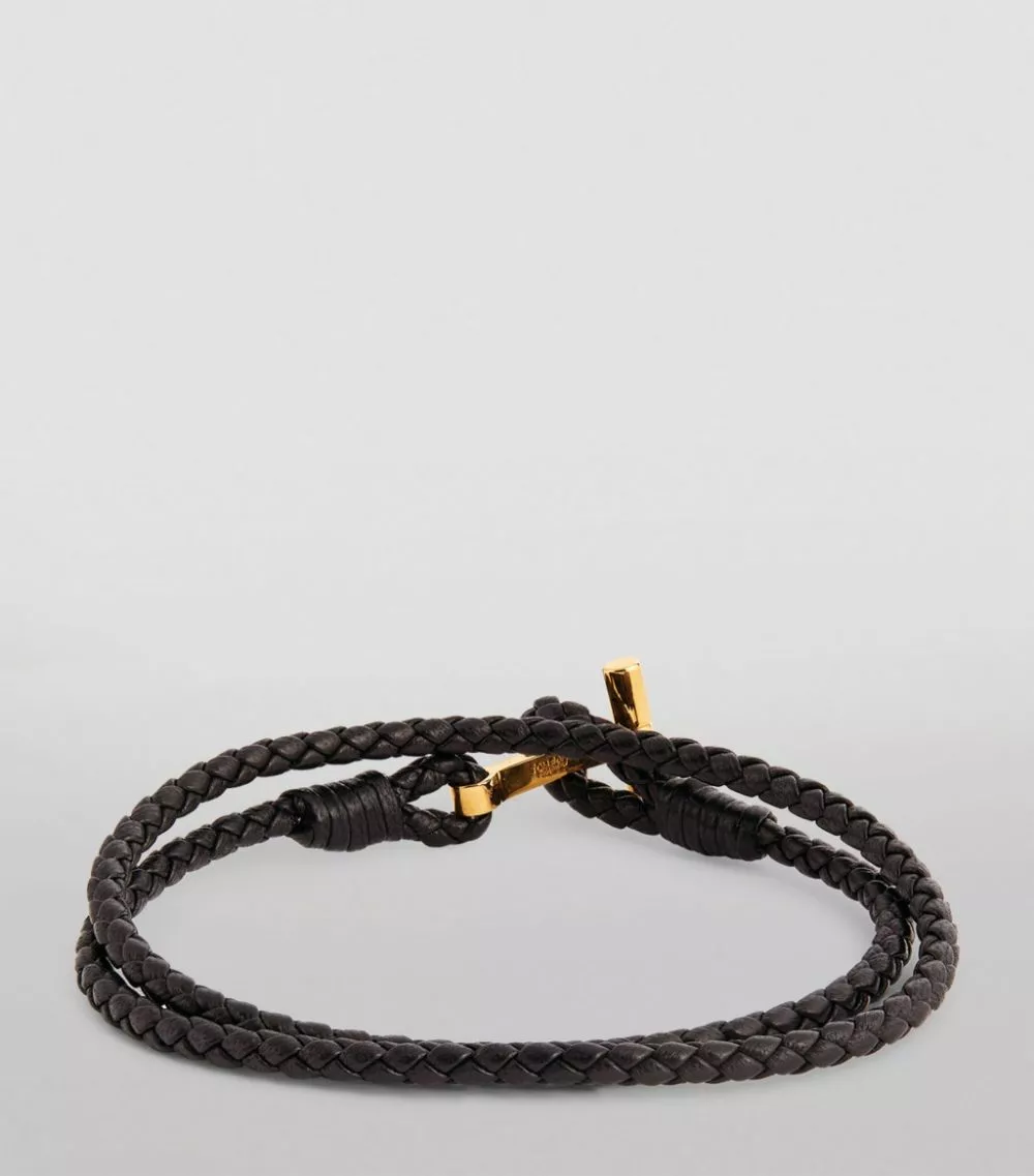 If your daily uniform is in need of a little pick-me-up, look to TOM FORD’s accessories line-up for designs that are small in stature, but maximum in impact. A perfect example is this braided bracelet, made in Italy from luxurious leather. It secures in place with a gold-tone T-logo, offering a quiet yet confident introduction to the fashion house’s seductive world of high glamour.