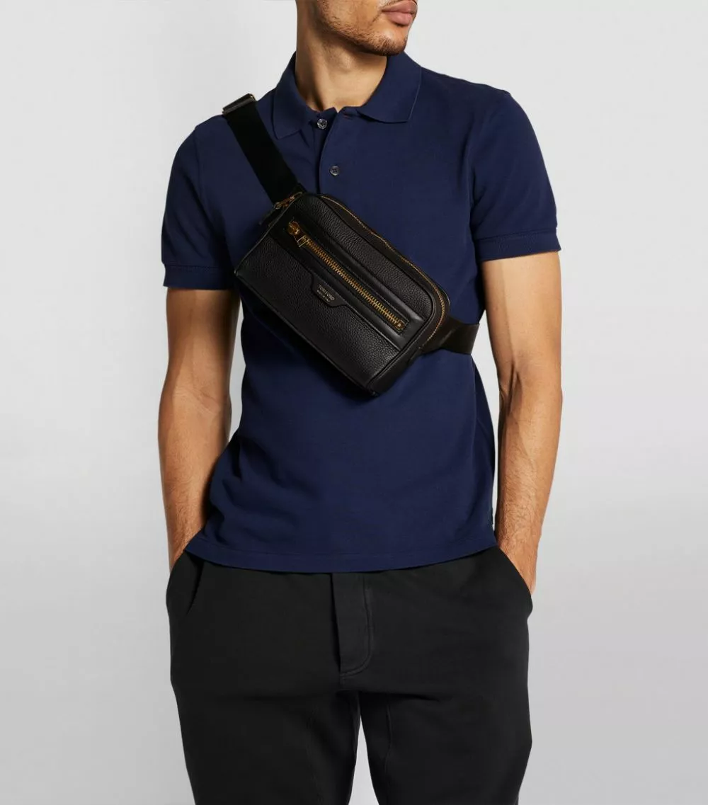 A TOM FORD bag, such as the Buckley belt bag silhouette, doesn’t require overt logos in order to convey its luxury associations; instead, it lets the opulence of its aesthetic speak for itself. In this instance, grained leather constitutes the surface of the piece, accentuated by gold-tone hardware that casts a sense of extravagance throughout the design. The small, contemporary shape reflects a fusion of the brand’s premium quality with youthful, street style-ready forms.