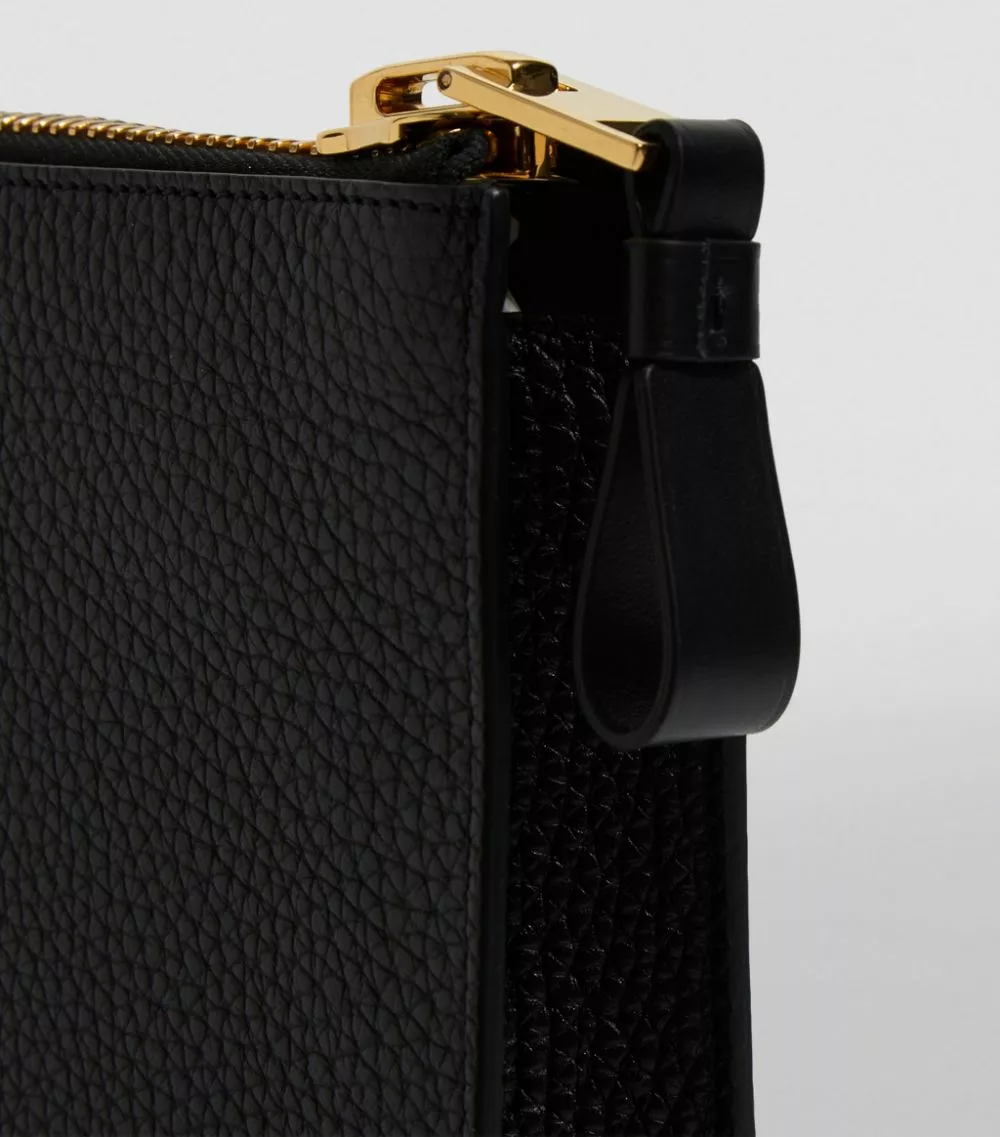 The sumptuous, rich texture of this TOM FORD Buckley zip pouch is left untouched, bar the miniature logo that accentuates the deep leather construction to reinforce the piece’s high-fashion credentials. Slim and easy to carry, it’s the perfect size for a laptop or tablet, with additional slip pockets to keep you organised throughout your working day. The chunky, gold-tone zip imbues the bag with a bold and contemporary decadence.