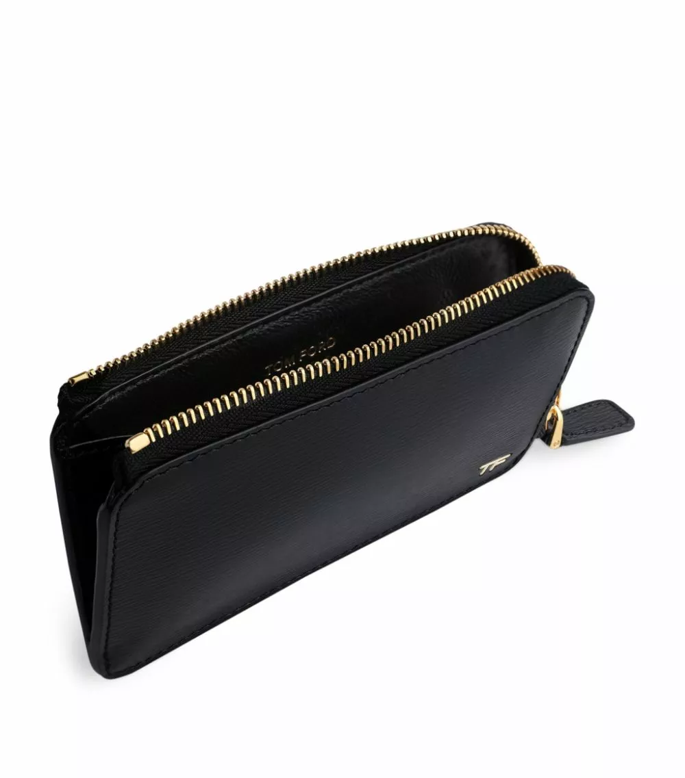 Imbue your accessories arsenal with the understated elegance of this TOM FORD zip wallet. Crafted in Italy from subtly textured leather, the streamlined profile is punctuated with gold-tone logo embossing. The design opens to reveal a spacious interior for all of your precious essentials.