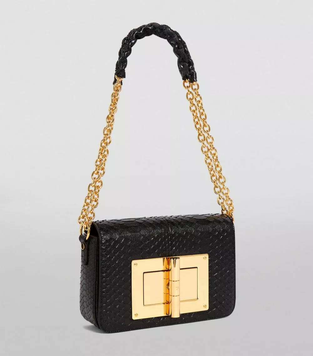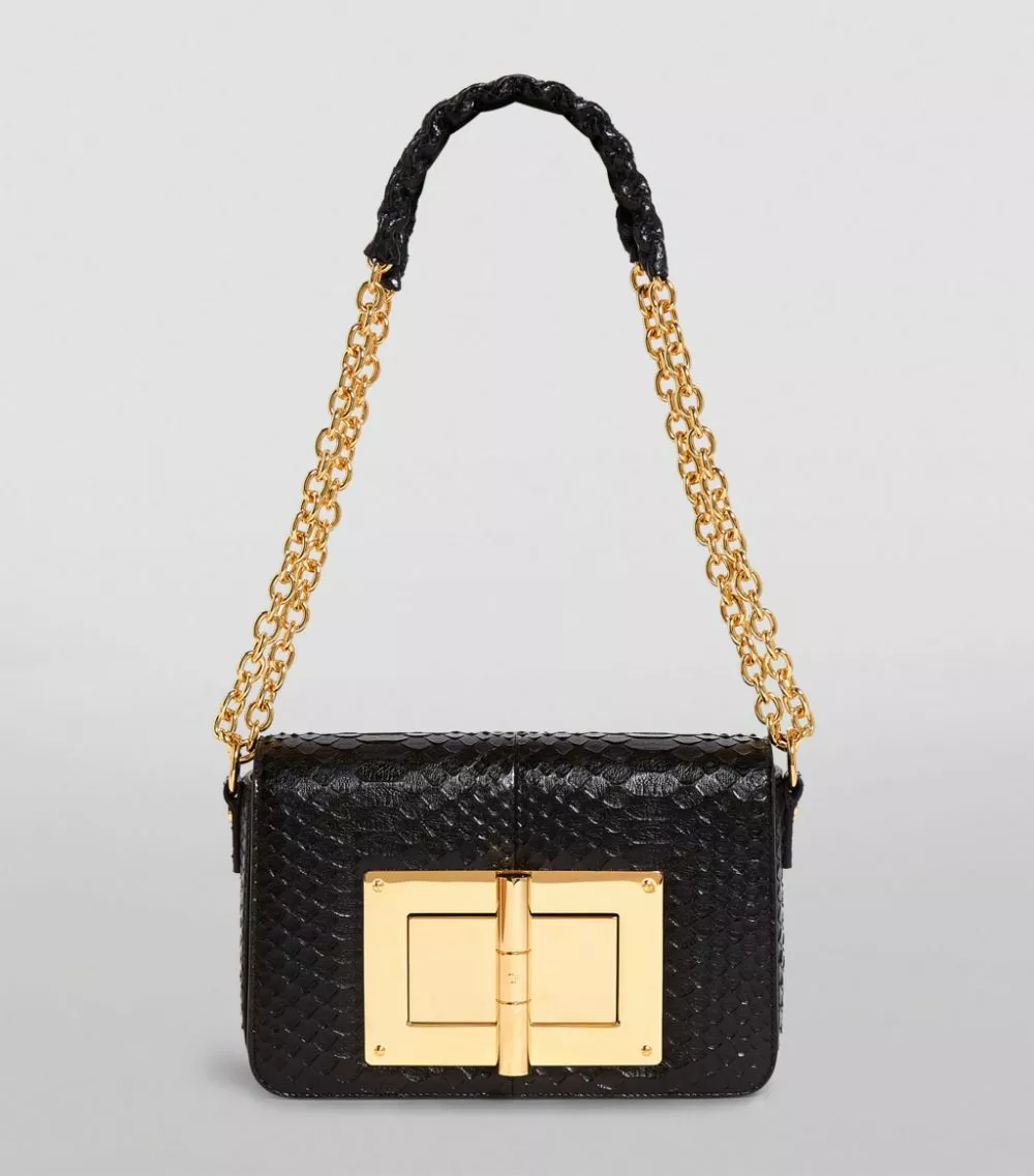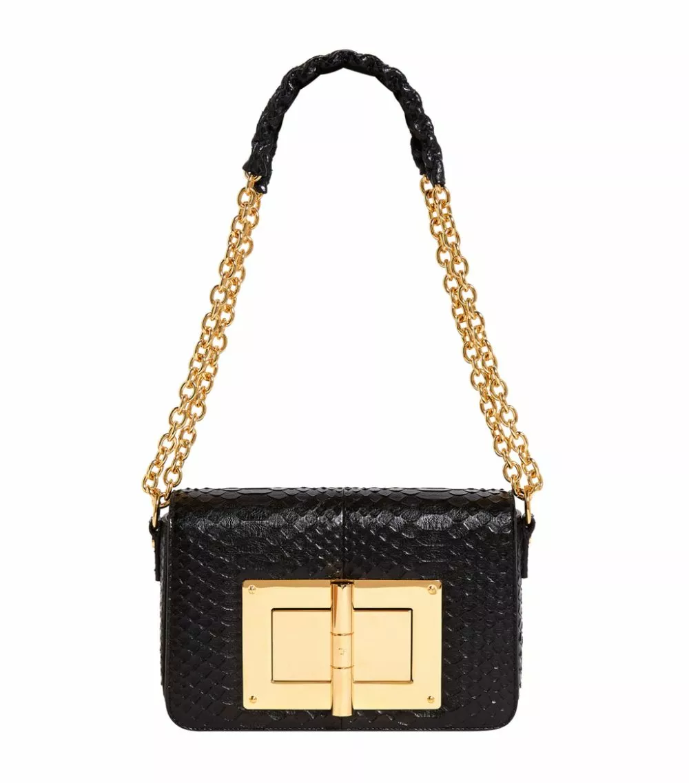 Characterised by an oversized turnlock fastening, the Natalia shoulder bag from TOM FORD is reimagined every season – cementing it as one of the label’s most coveted silhouettes. The boxy piece captures the fashion house’s love for overt glamour through a python skin composition and gleaming gold-tone hardware, while the capacious leather-lined interior provides ample space for holding all the evening essentials.