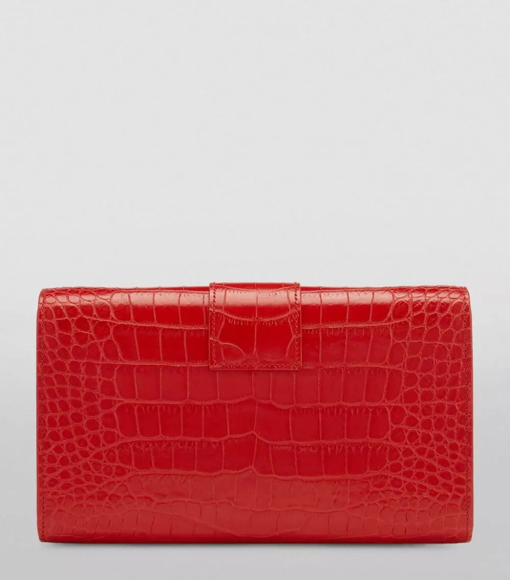 As its name might suggest, the TOM FORD T Clasp bag revolves around its fastening – a sleek detail in which a gold-tone T motif secures the flap shut. When closed, it presents a solid plate of opulent gold-tone metal that stands in exquisite contrast to the silhouette’s luxe croc-embossed leather exterior.