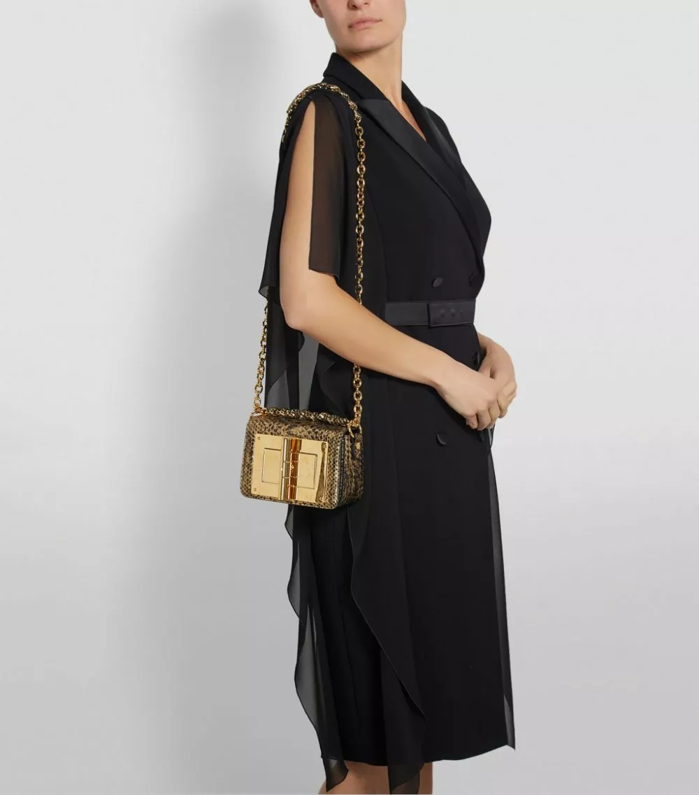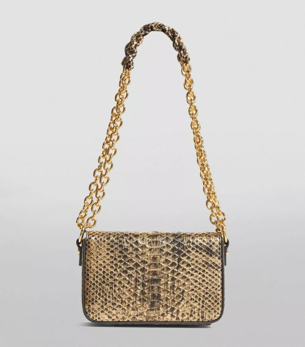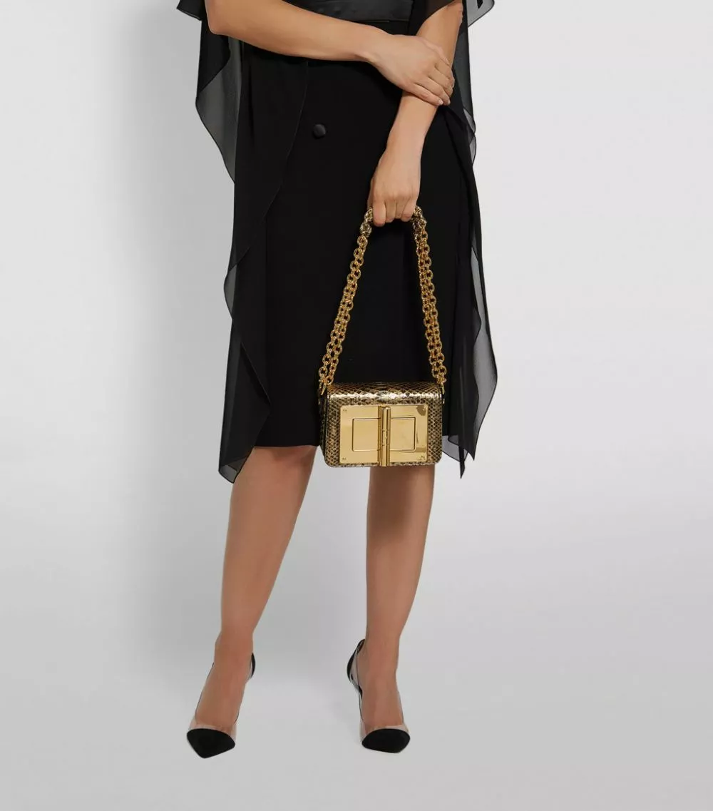 Characterised by an oversized turnlock fastening, the Natalia shoulder bag from TOM FORD is reimagined every season – cementing it as one of the label’s most coveted silhouettes. The boxy piece captures the fashion house’s love for overt glamour through a python skin composition and gleaming gold-tone hardware, while the capacious leather-lined interior provides ample space for holding all the evening essentials.