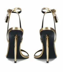 TOM FORD Leather Padlock Sandals 105 GOLD Heeled Sandals